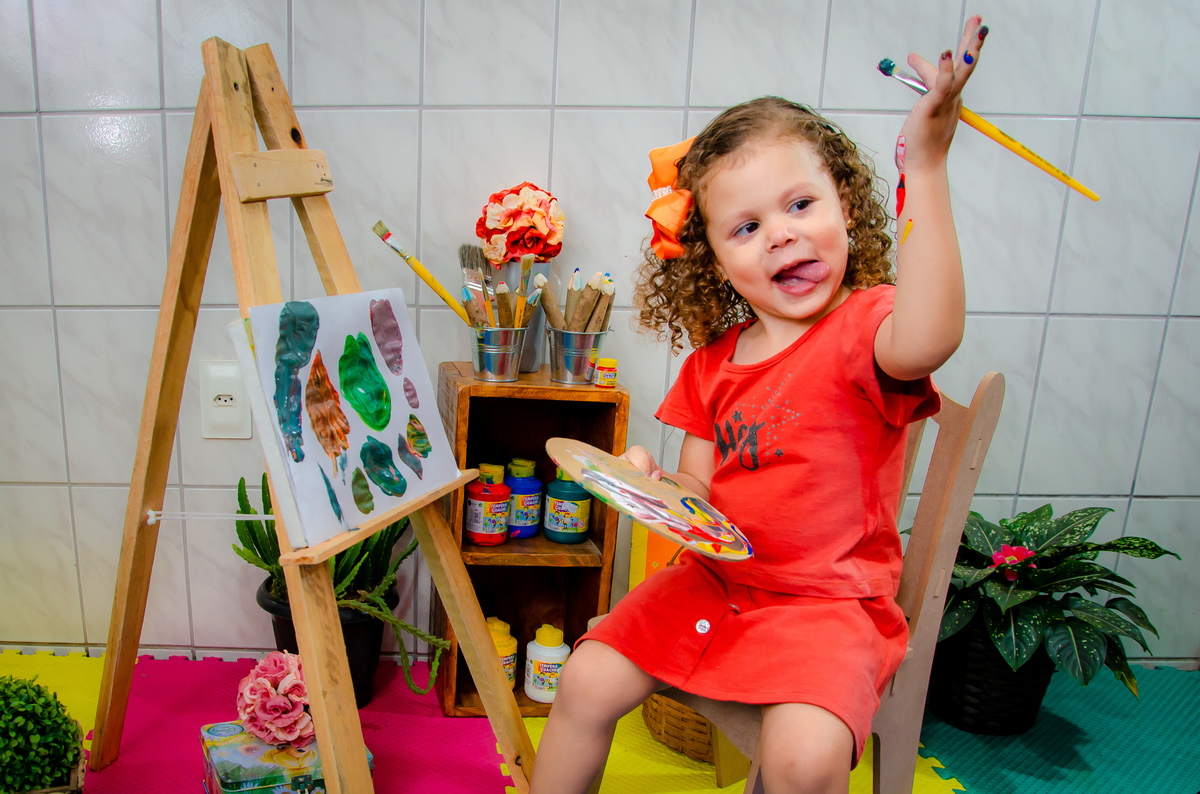 Beatriz ama brincar com tintas, lápis de cores, massinha, papeis coloridos, cola!